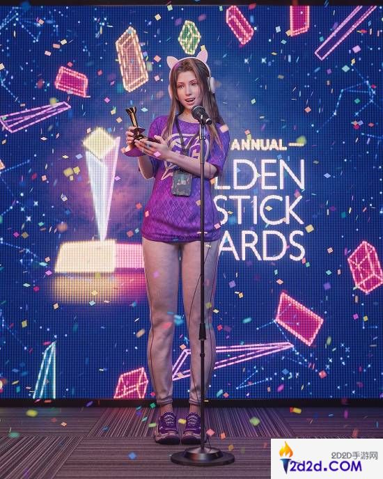 在本届金摇杆奖颁奖典礼上,《最终幻想7:重生》爱丽丝的配音演员Briana White荣获了“最佳女配角”奖。3D艺术家@drayqin 晒出新作品祝贺,图中爱丽丝手捧金摇杆奖杯在台上发表获奖感言,造型非常可爱。