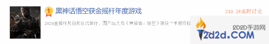 在今天凌晨举办的2024“金摇杆”颁奖仪式上,《黑神话:悟空》成功斩获“最佳视觉设计”以及“年度终极游戏”两项大奖!这一消息引发国内玩家们的狂欢,截止至发稿时,话题“黑神话悟空获金摇杆年度游戏”登上贴吧热议榜第一位!