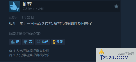 玩家们纷纷表示记忆中的《真三国无双》回来啦!这次的游戏内容突出一个战斗爽!