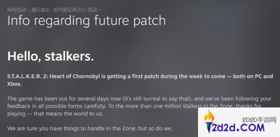 《潜行者2:切尔诺贝利之心》在上线后非常火爆,作为一款首发XGP的作品,游戏的首发销量也超过了百万份。不过因为存在的各种BUG,《潜行者2》并没有收获预期中那么多好评,在Steam的评价目前为“多半好评”(78%好评)。而现在,GSC官方终于宣布首个补丁将在下周上线,修复大量问问题。