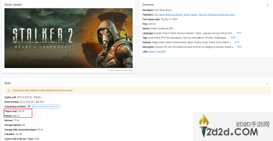 根据数据统计网站Gamalytic的数据显示,截止至发稿时,《潜行者2》仅发售两天销售总额就超越了已发售近一个月的《龙腾世纪4》。