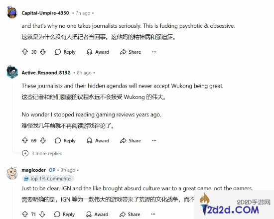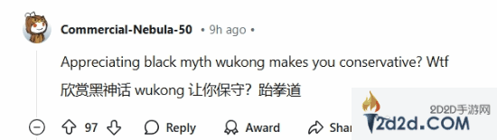 这番言论很快引发了网友们的广泛讨论和不满。有玩家在Reddit上转发了Polygon的报道,并在标题中指出:“Polygon: 保守文化战士成为《黑神话:悟空》获奖的原因”。