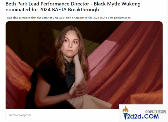 在英国电影与电视艺术学院奖(BAFTA)的评选中,《黑神话:悟空》首席表演总监Beth Park荣获了最佳突破奖提名。这项提名对于她的个人职业生涯以及整个游戏行业来说,都是一个重要的肯定。