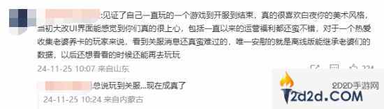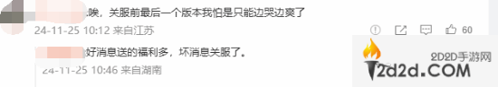 不少玩家对本作的停服表示惋惜,虽然官方确认决定推出陪伴版,但依然很伤心。