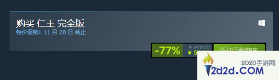 《卧龙》《仁王》系列Steam史低促销将结束!57元起