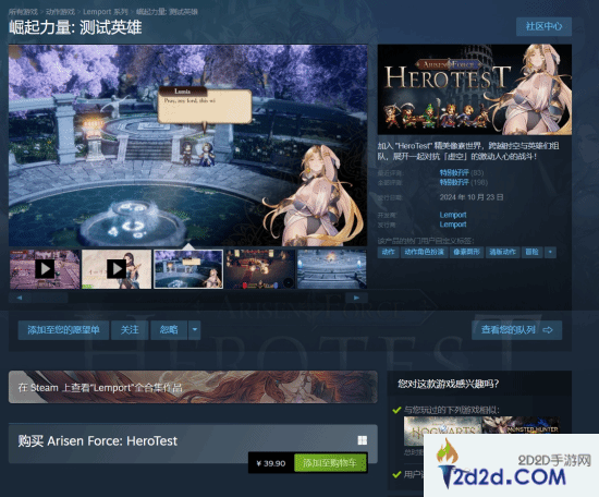 另外,值得一提的是,该团队Lemport在Steam上还有一款名为《崛起力量:测试英雄》的游戏,游戏售价39.90元,目前评价为特别好评。