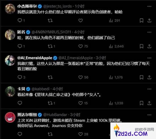 有玩家认为,可能这就是不让媒体试玩展示角色的原因吧,你永远不知道角色会被捏成什么奇葩样子。也有玩家表示,肯定有人会觉得这张脸是正常的,因为这些人已经习惯每天看着丑陋无比的脸。