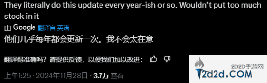 不过也有玩家表示,这只是每年的例行更新罢了,别这么激动。