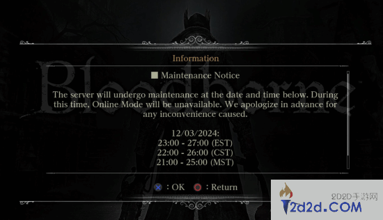 就在今日《血源》游戏内发布公告,宣布游戏服务器将于2024年12月3日进行维护,维护时间为4个小时。
