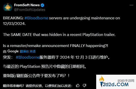 这一消息引起了《血源》粉丝们的热议。玩家们纷纷表示,这是不是意味着《血源》的重制版或是PC版终于要有消息了?