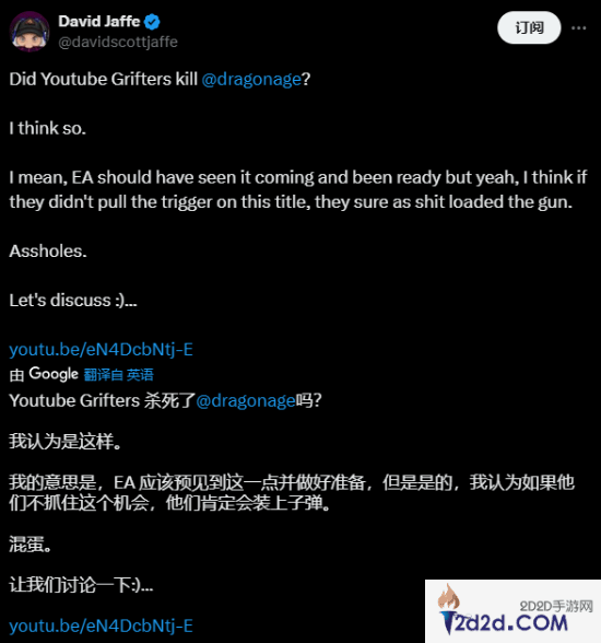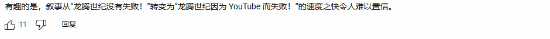 还有网友锐评:“有意思的是,你的观点从‘龙腾世纪没有失败!’变成‘《龙腾世纪》因为YouTube而失败!’的速度之快,令人难以置信。”