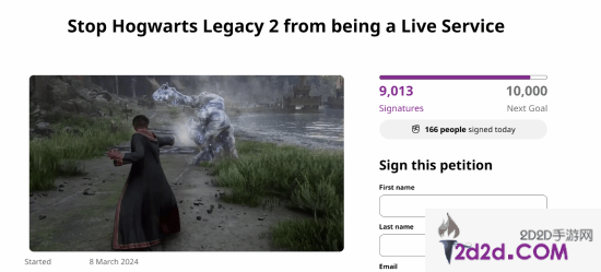 今年3月份,有玩家曾在请愿网站Change.org里发起请愿,要求华纳不要将尚未公布的《霍格沃茨之遗2》制作成实时服务型游戏。截至发稿前,签署这份请愿书的玩家人数已经达到了9013人,即将突破一万人。
