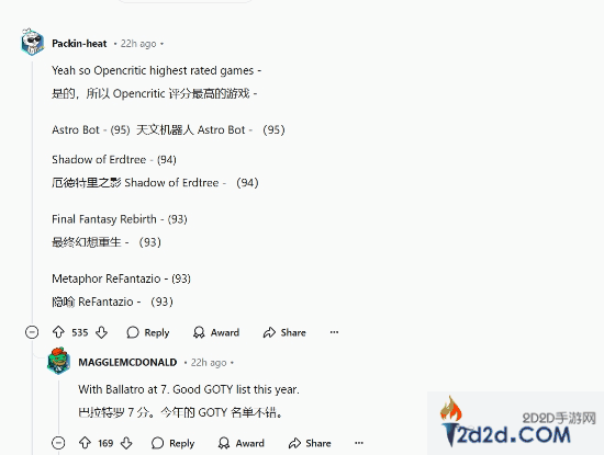 这一变化引发了Reddit上的广泛讨论,网友们纷纷表达自己的看法和对这一排名的不同意见。