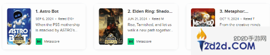 近日,有网友发现,《宇宙机器人》成功登顶M站2024年游戏评分排行榜,成为年度评分最高的游戏。将《艾尔登法环:黄金树幽影》推至第二位。