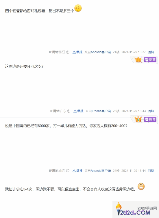 然而,也有网友对分阶段发售的方式提出了不满:“看来要每周吃一次了”“怎么是分四个阶段上啊,不能一起,拿想要的要等好久”。另有玩家认为,虽然周边吸引人,但不打算收藏。