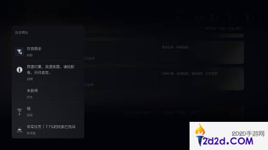 除白金杯外,收集率最低的奖杯是“饮食周全”,仅有7.1%的玩家获得。需要收集所有10种葫芦、9种酒和27种泡酒物,比较看运气。根据玩家们的经历,本作白金难度不算太高,大约需要50小时。