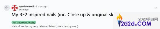 作为最热门的游戏IP之一,《生化危机》自上世纪90年代诞生以来,就催生出大量粉丝创作的作品。最近,Reddit上一位玩家@Diamago 晒出《生化危机2》主题的美甲。