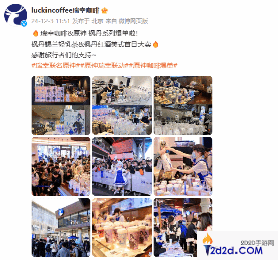 瑞幸晒《原神》联动新品爆单活动现场照 玩家喊话补货