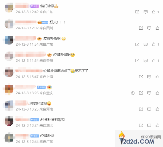 而《原神》的粉丝们也是在评论区表示,“赶紧补货啊!”“立牌补货、钥匙扣补货”等等,热度可见一斑。