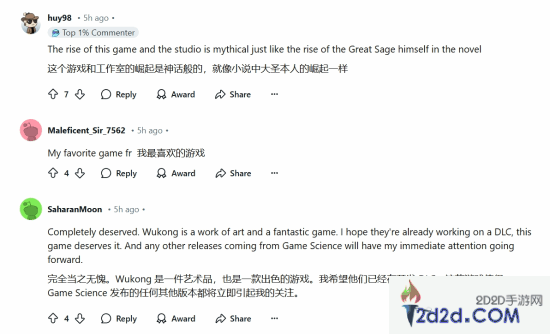 还有网友表示:“这款游戏的崛起就像小说中孙悟空的崛起一样,神话一般令人振奋。”另一位评论则充满期待:“《黑神话:悟空》是艺术品,真是一款出色的游戏。我希望他们已经在着手开发DLC,这款游戏值得有更多内容。而且游戏科学的任何新发布,我都会立刻关注。”