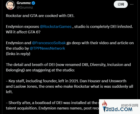 今日,前暴雪制作人,知名反“DEI”先锋@Grummz爆料,RockstarGames工作室现已被“觉醒文化”完全渗透,有可能会影响《GTA6》的开发。