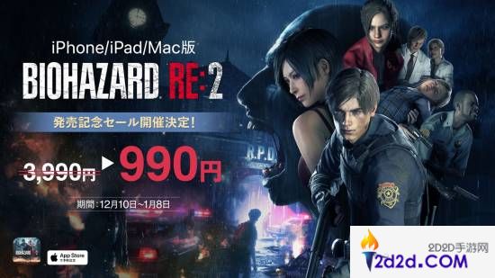 卡普空今日宣布,将为苹果版《生化危机2 重制版》开启首发优惠活动。12月10日至明年1月8日期间,原价3990日元的《生化危机2 重制版》,优惠后的价格仅需990日元(约人民币45元)。