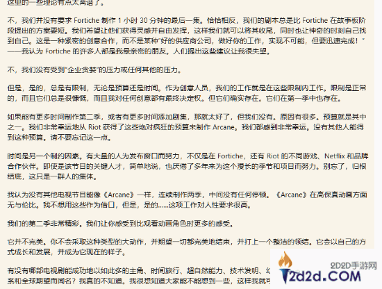 “我们并没有要求Fortiche制作一个时长一个半小时的最后一集,”Linke在Reddit论坛上解释道,“恰恰相反,我们的剧本总是比Fortiche提出的需求要短,我们希望让他们受到启发并自由发挥。”