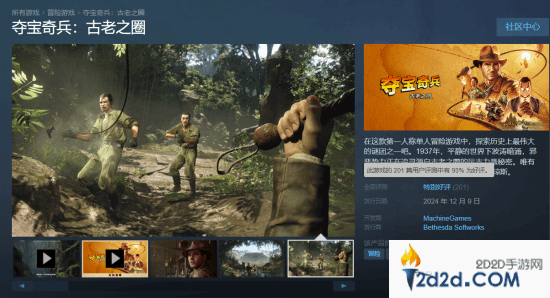 《夺宝奇兵:古老之圈》将于12月9日正式发售,高级版已于12月6日(提前3天)开启抢先体验,游戏在Steam获得了“特别好评”的评价,201篇用户评测,好评率93%。