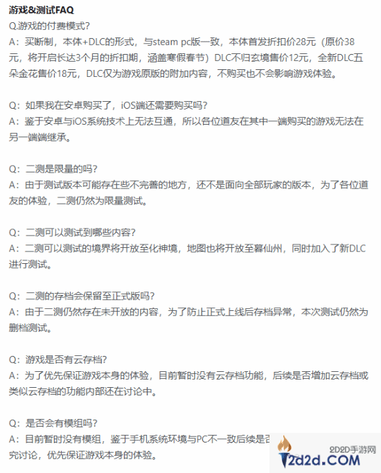付费模式:本体买断+DLC付费,与PC版一致,不含其他氪金内容,DLC不购买不影响本体游玩体验,各位道友可以按需进行购买。