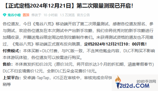 今日,《鬼谷八荒》移动端第二次限量测试开始,同时官宣移动端正式宣布“反向跳票”,定档2024年12月21日10:00开售!