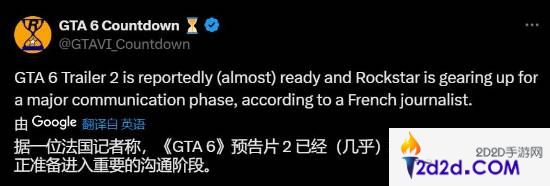 据推主GTA 6 Countdown消息,法国游戏记者Chris Klippel透露《GTA6》第二支预告片已经准备完成,R星目前正准备进入重要的沟通阶段。