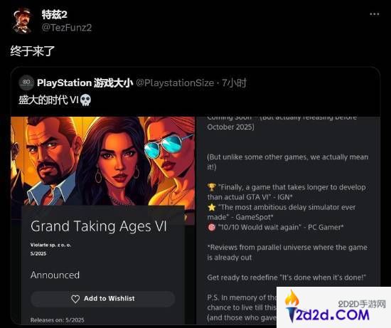 “终于有一款游戏比《GTA 6》开发时间更长” —— IGN