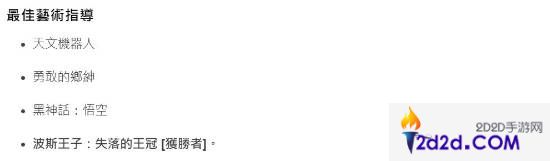 BTA还包括最佳游戏设计、最佳叙事设计、最佳艺术指导、最佳音乐指导、最佳西班牙独立游戏等奖项。《黑神话:悟空》也在最佳艺术指导中荣获提名,遗憾的是最终输给了《波斯王子:失落的王冠》。
