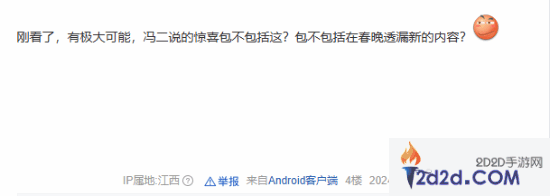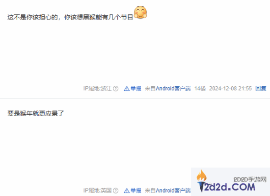 节目引发众多玩家讨论,有玩家认为《黑神话:悟空》极有可能会参加春晚,说道:“刚看了,有极大可能,冯骥说的惊喜包不包括这?包不包括在春晚透漏新的内容?”“感觉会,连我姥爷都知道黑神话了,可想而知这个影响力。”还有玩家表示:“这不是(帖主)该担心的,你该想黑猴能有几个节目。”