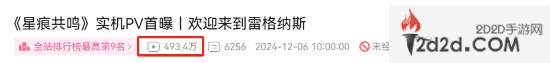 12月6日,腾讯旗下,由上海宝可拉工作室开发的动漫风大型MMORPG游戏《星痕共鸣》公开了实机PV,受到了玩家的热烈关注。截至目前,该PV在B站的播放量已经突破490万,即将达到500万大关。