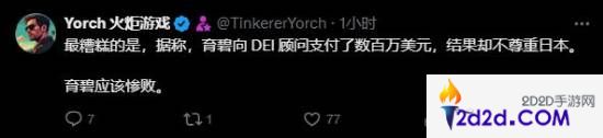 评论区有网友调侃,弥助是个爱粉红色的男同。事实上,副叙事总监Brooke Davies曾透露过《刺客信条:影》男女主确实都有同性恋爱。