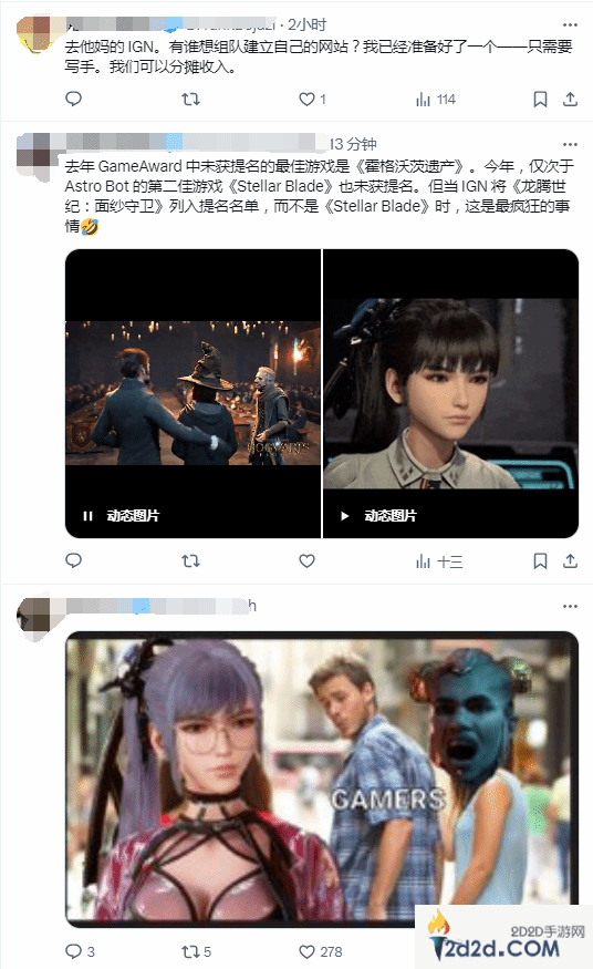 有玩家写道:“去年IGN大奖未获得提名的是《霍格沃茨之遗》,今年则是《剑星》。更疯狂的是,《龙腾世纪4》被列入了名单之中。”