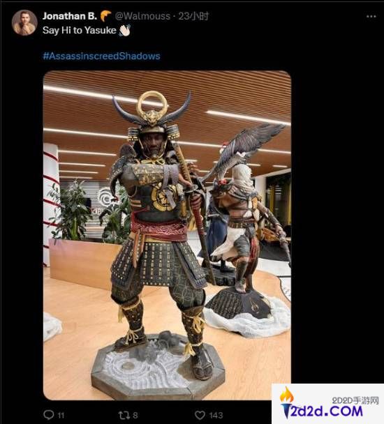 育碧员工Jonathan B发图曝光了《刺客信条:影》黑人男主弥助的手办雕像,看起来制作挺精良。弥助身穿代表武士大将阶级的头盔甲冑,挥舞着日本武士刀,眼神露出坚毅的杀气让人不寒而栗,似乎要将阻碍他的敌人赶尽杀绝,霸气十足。