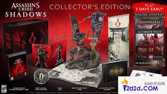 《刺客信条:影》实体典藏版也含有弥助&奈绪江的双人手办,不过由于是在延期前公布的,因此典藏版内容可能会发生变化。目前育碧仍未再次开启游戏预购。