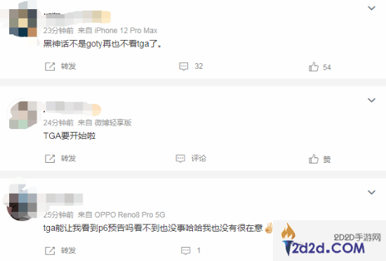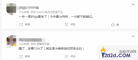 很多网友都在微博上表达了对自己喜欢的游戏的支持,想看到心爱的作品拿下年度最佳。还有网友对TGA上播出的预告片更期待,希望能有重磅新作公布。