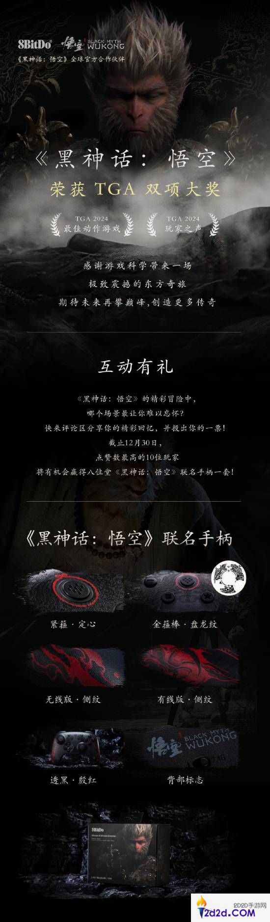 庆《黑神话:悟空》得TGA双项大奖!八位堂抽联名手柄
