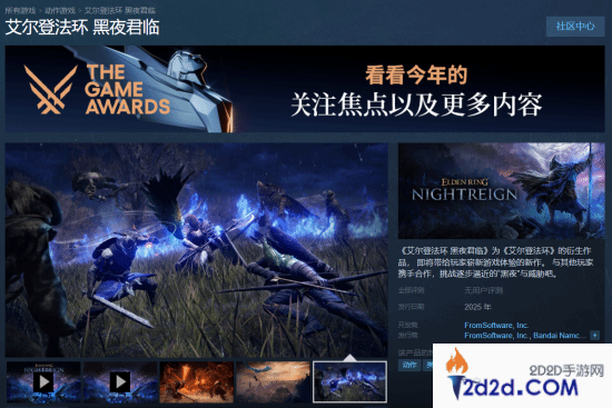 在今日的TGA 2024里,FromSoftware公开了《艾尔登法环:黑夜君临》,游戏为多人合作玩法,将于2025年正式发售,Steam商店页面一并上线。