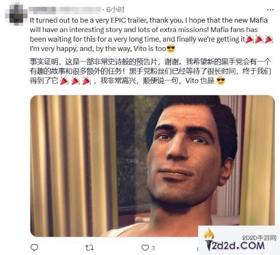 在官方预告片的推文下方,很多玩家认为《四海兄弟:故乡》的质量比较出色,一些玩家说道:“看起来它会是一部真正的满分杰作,迫不及待了!”“从游戏玩法和叙事的角度来看,《四海兄弟:故乡》的表现将会很惊人。”“首发日必玩!”还有玩家希望《四海兄弟:故乡》能够有更多的任务,剧情能够出色,因为《四海兄弟》系列的粉丝已经为此等待许久。