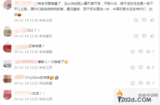 有玩家称赞杨奇更加成熟稳重了,没有被一时的得失蒙蔽了双眼。还有玩家表示,《黑神话》的大型更新今日才刚刚全平台上线,没想到年底还有惊喜,可能是DLC要正式公布了,让人期待值拉满。