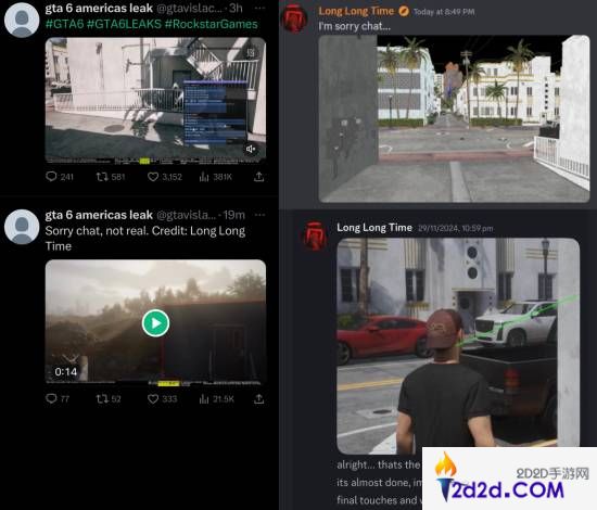 不过几个小时后,有人发文声明这其实是他使用虚幻5自制的画面,是在模仿2022年《GTA6》真正的大规模泄露事件。