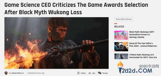 外媒视角:《黑神话》失利后 游科CEO批评TGA评选