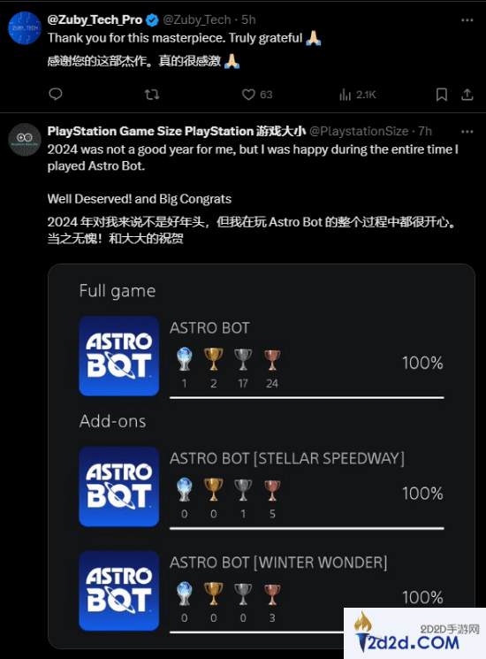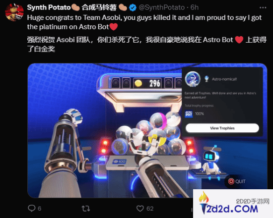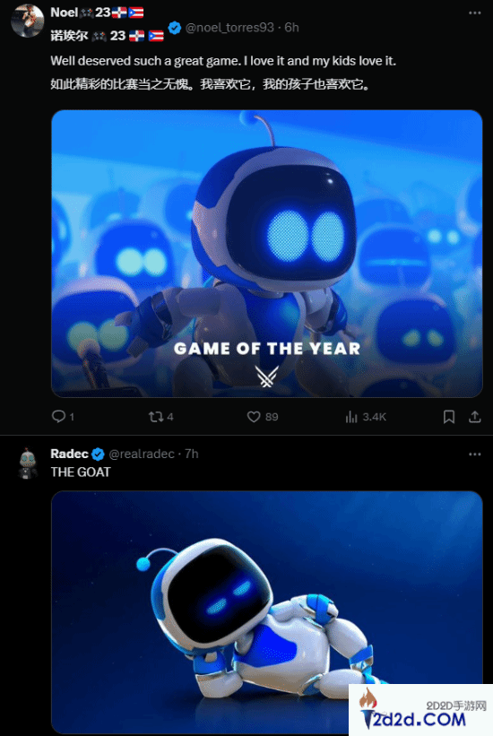 《宇宙机器人》拿下TGA年度最佳!官方发文感谢玩家