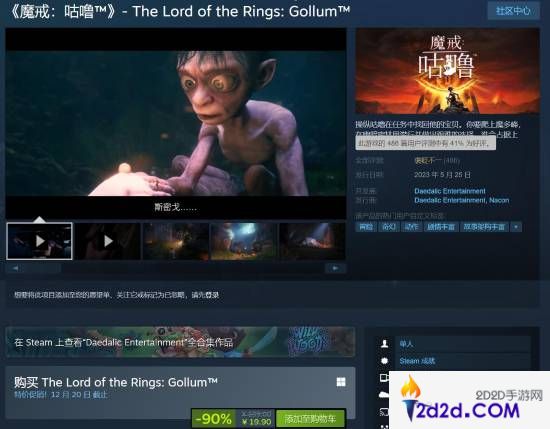 1折新史低!《魔戒:咕噜》Steam促销打骨折