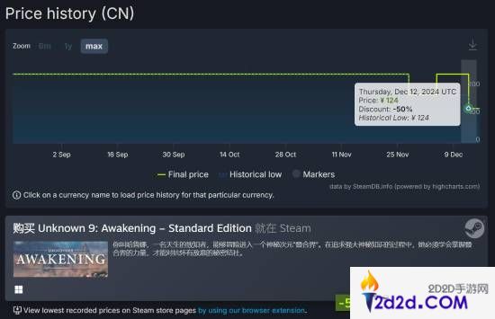 SteamDB数据显示,Steam平台的《无名九使:觉醒》于日前开启特卖活动,刷新历史最低价格。上次优惠力度还是7折,而这次的力度高达5折,标准版国区新史低价124元!豪华版也有同样力度的优惠,活动持续至12月20日。