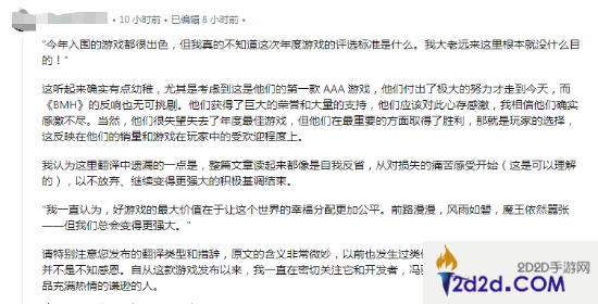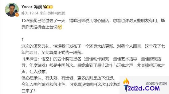 游戏博主Rino搬运并翻译了冯骥昨晚发布的TGA感想,引发国外社区热议。只不过该博主的评论区有些尖锐过激,其中一些国外玩家嘲讽冯骥有些傲慢。